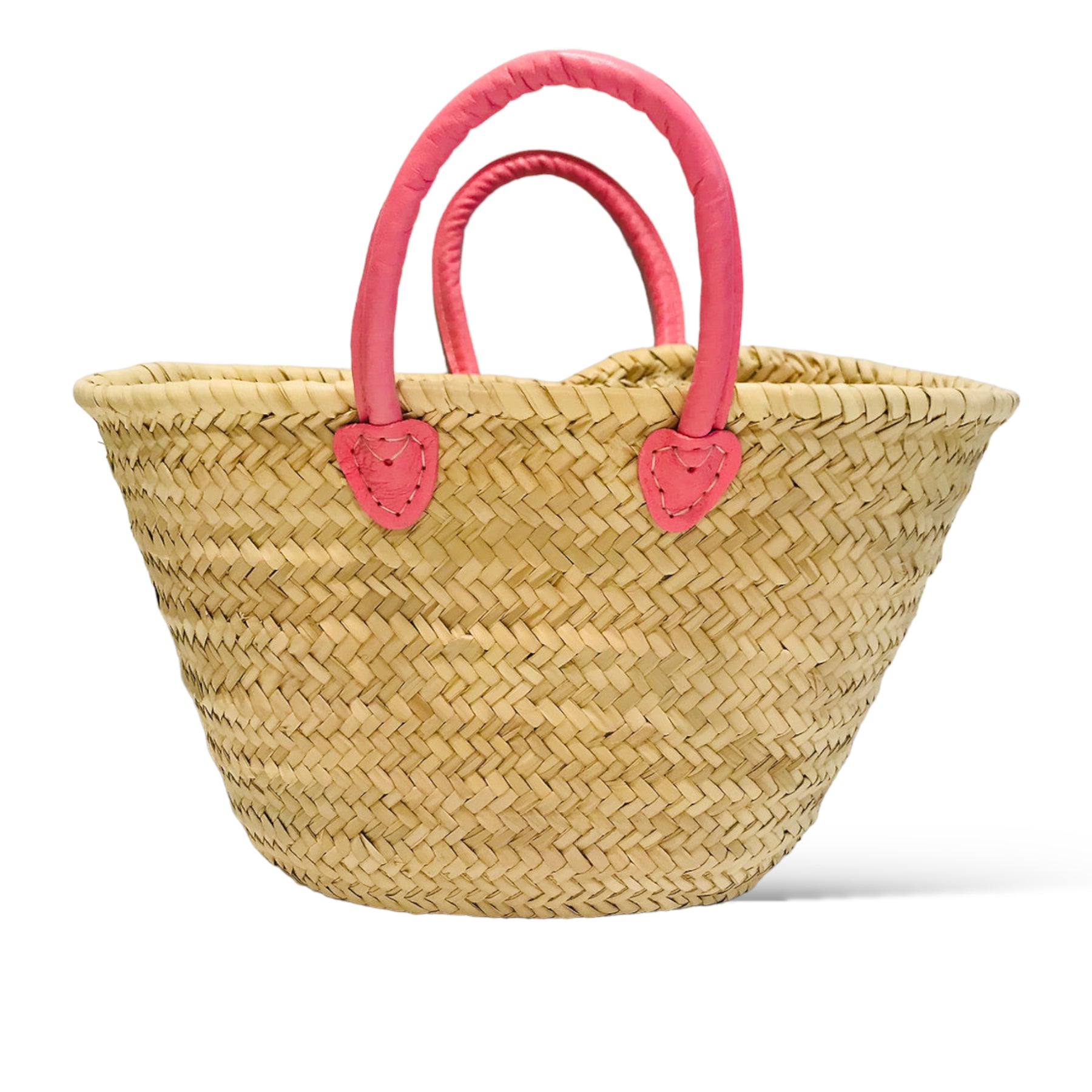 Made with palm leaves and short round padded leather handles.