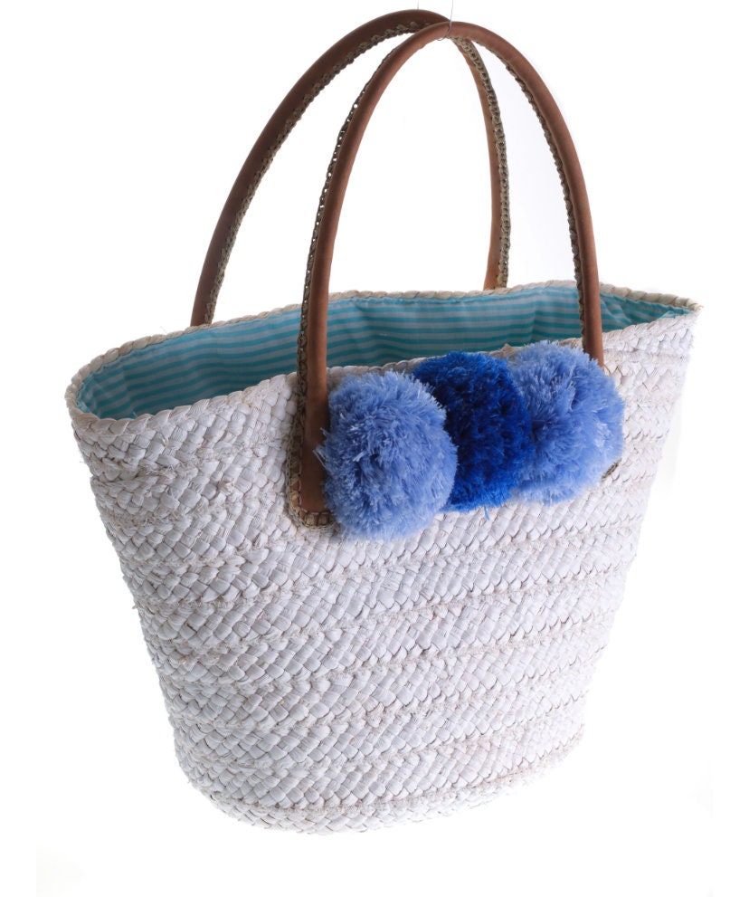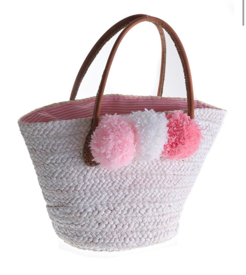 Pom Pom Straw Beach Basket