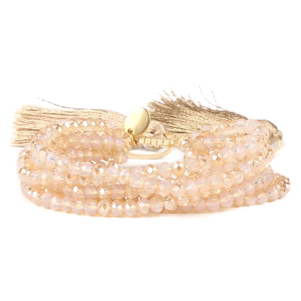 Item 2 Beaded strand bracelet with adjustable strap in gold.