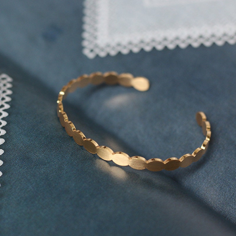 Wave design fashion bangle in steel and gold plated.