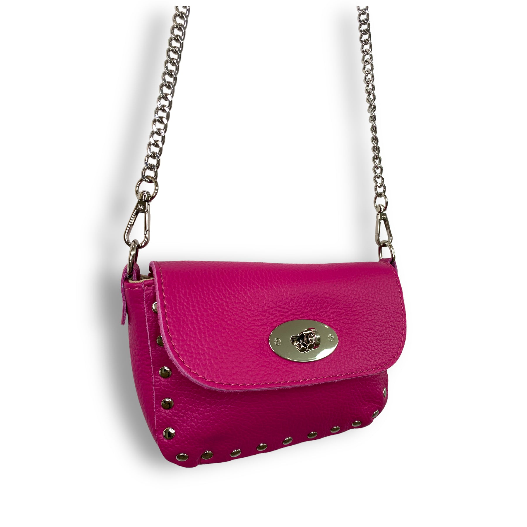 Italian leather Flap bag with postman's lock Silver hardware and chain strap Strap removes so you can add various styles of strap.