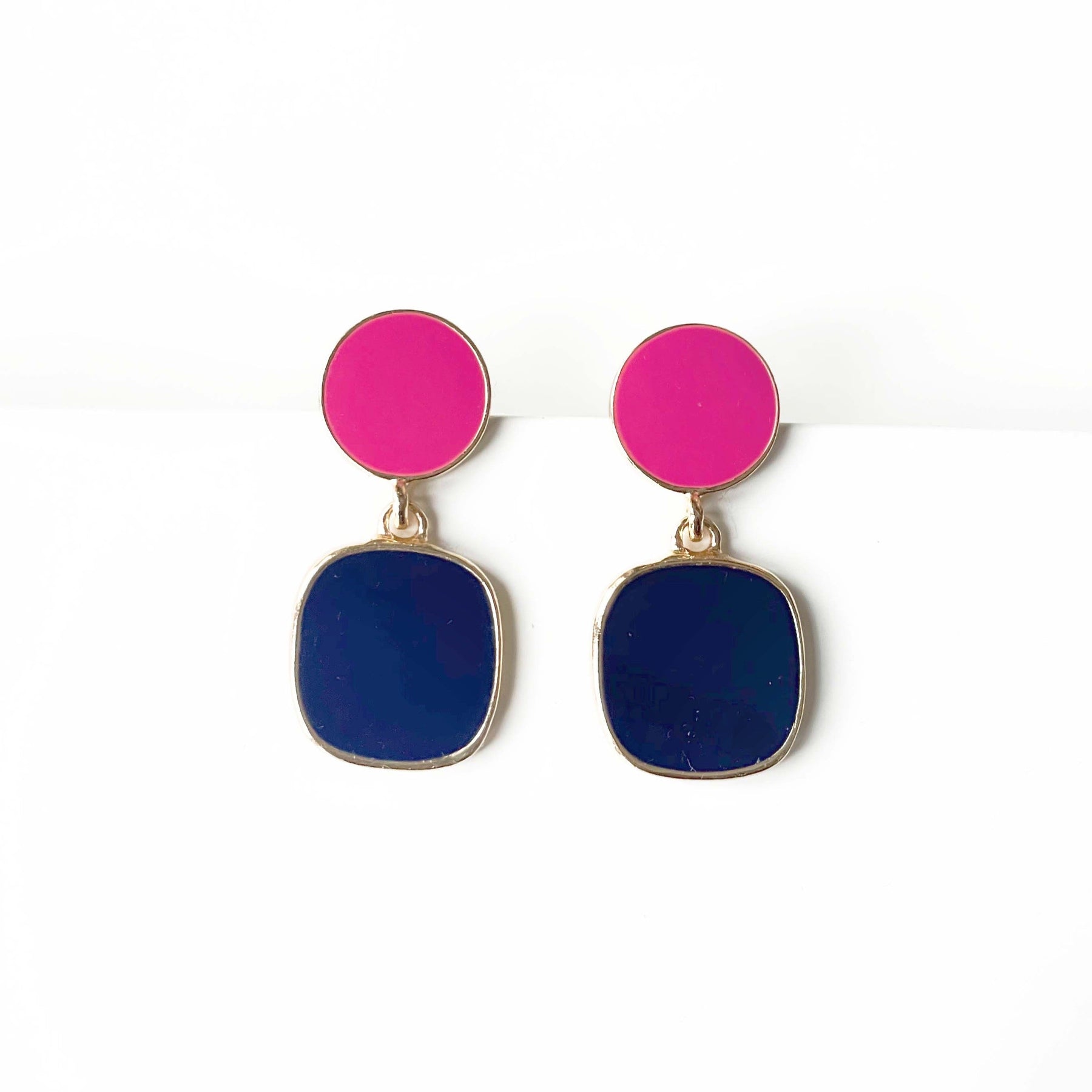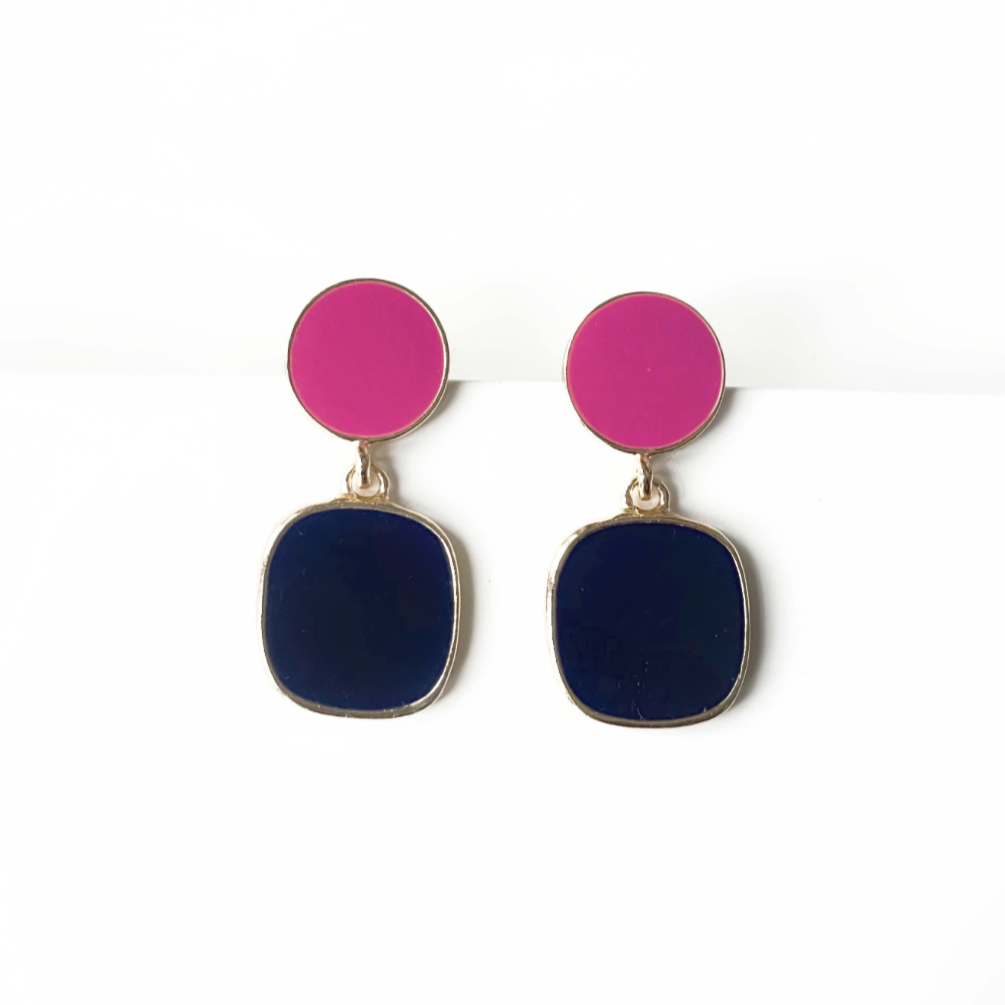 Add some colour to your earring collection with the Navy Madison enamel drop earrings.
