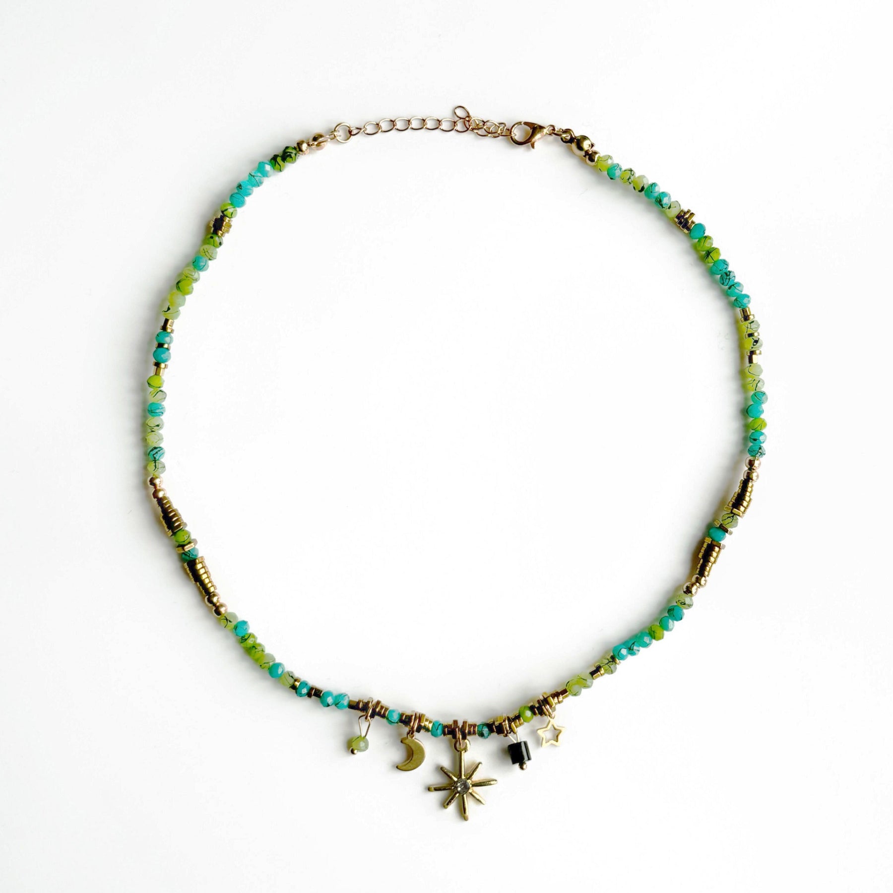 Get ready for some seriously good vibes! This chic choker is all about those unique beads, creating a boho look that's totally on point and perfect for layering. We've added some cute gold beads and celestial charms to give it that extra flair for the boho look.