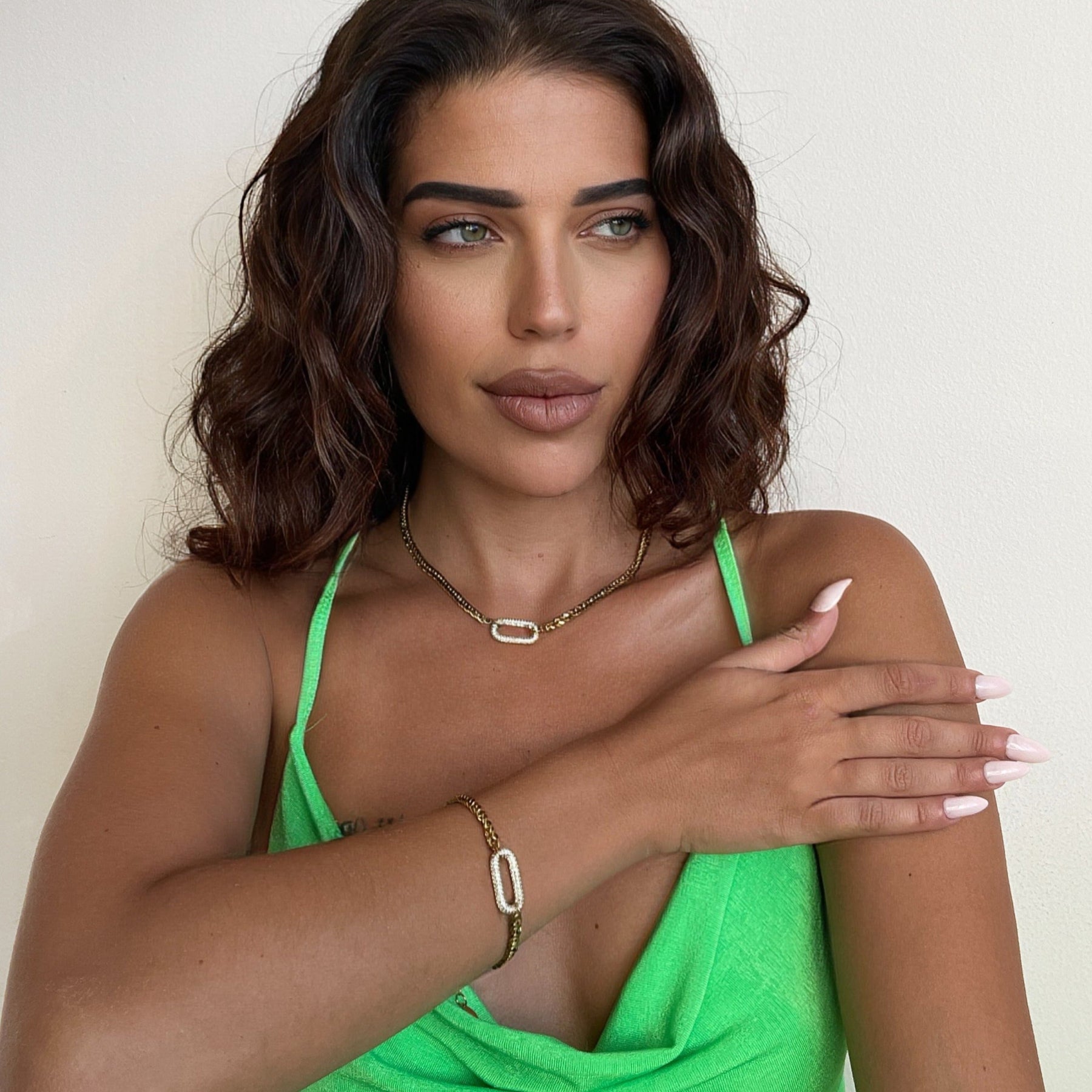 Make a statement with the Harlow Luxe 18k Gold Plated Necklace. This bold accessory will elevate any outfit, giving you a luxurious and daring look. Dare to stand out and take risks with this stunning statement piece.