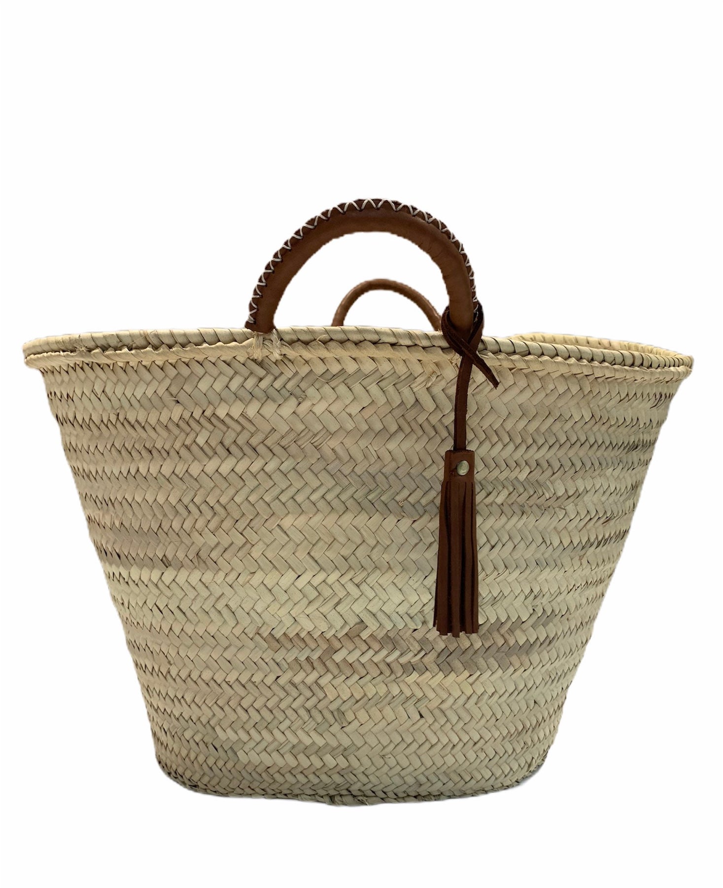 Straw 'Mykonos' Basket - Tan handles, fair-trade